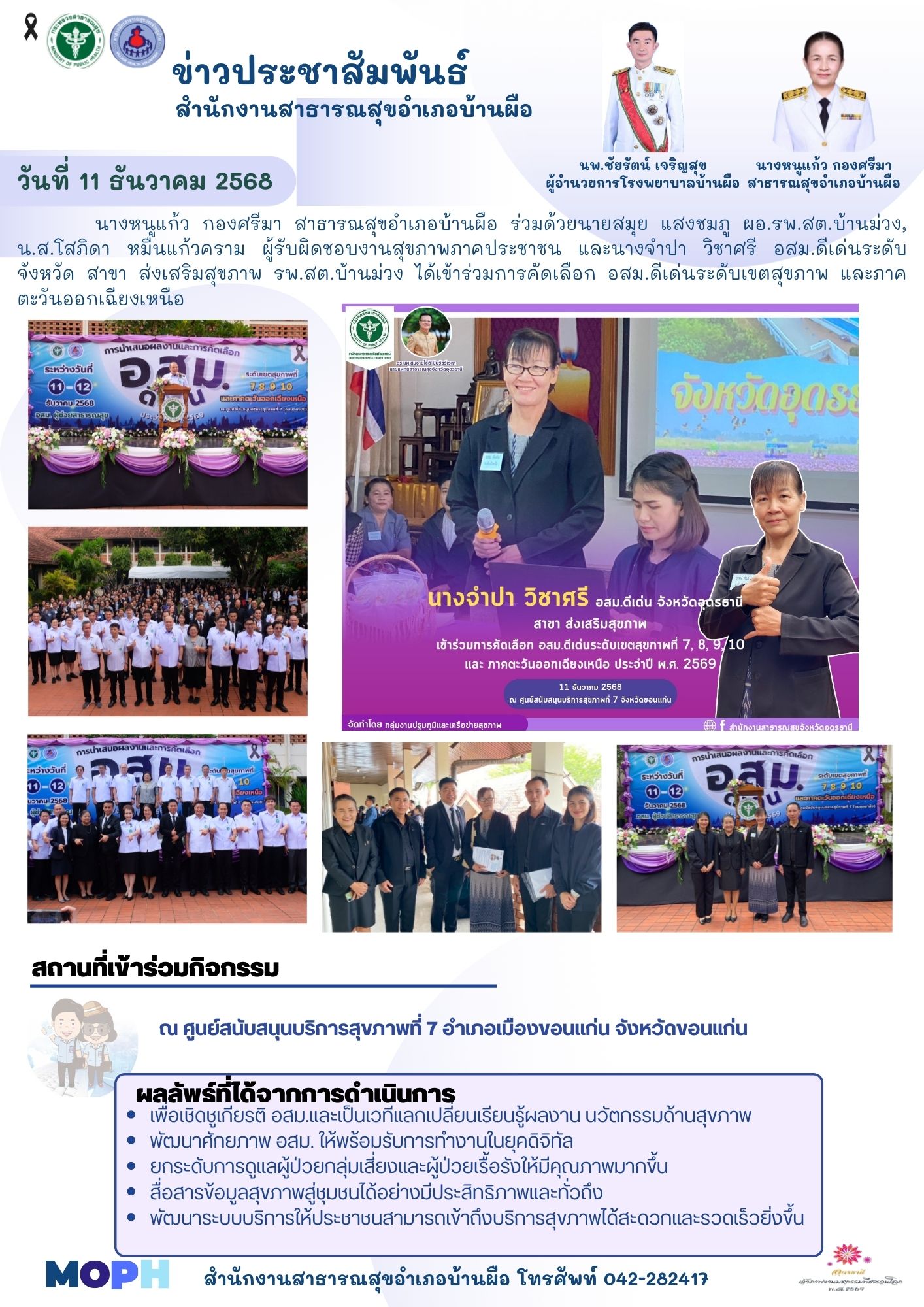 สสอ.บ้านผือ ส่ง อสม. ร่วมคัดเลือก อสม.ดีเด่นระดับภาค ที่จ.ขอนแก่น Attachments: FileFile size 11.12.68.jpg472 kB