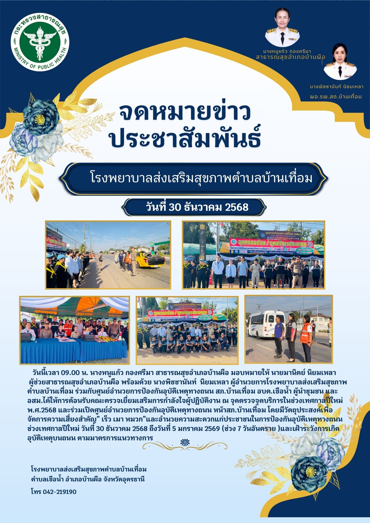 สสอ.บ้านผือ ตรวจเยี่ยมเสริมพลังในด่านบูรณาการป้องกันอุบัติเหตุเทศกาลปีใหม่ Attachments: FileFile size 30.12.2568.jpg487 kB