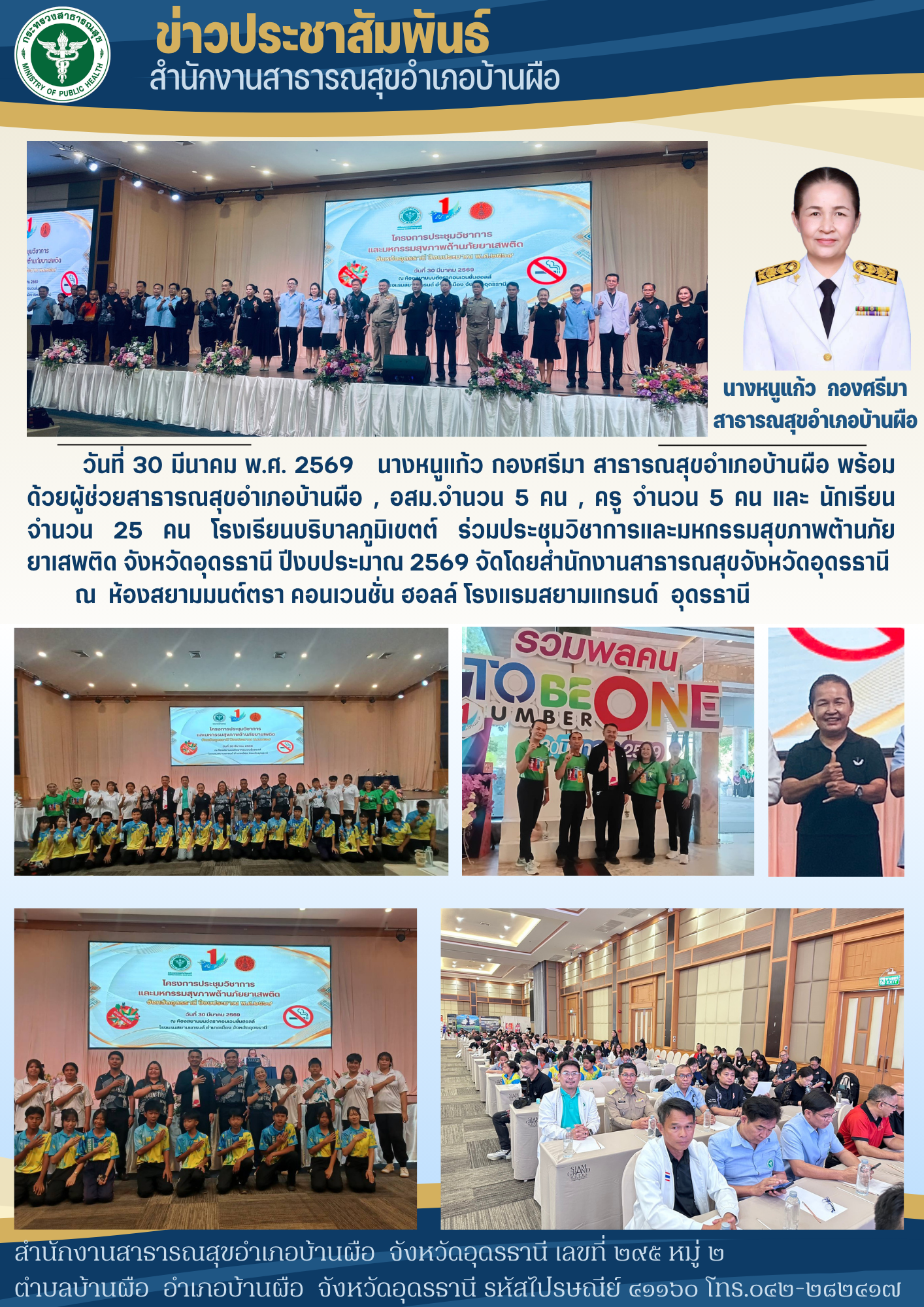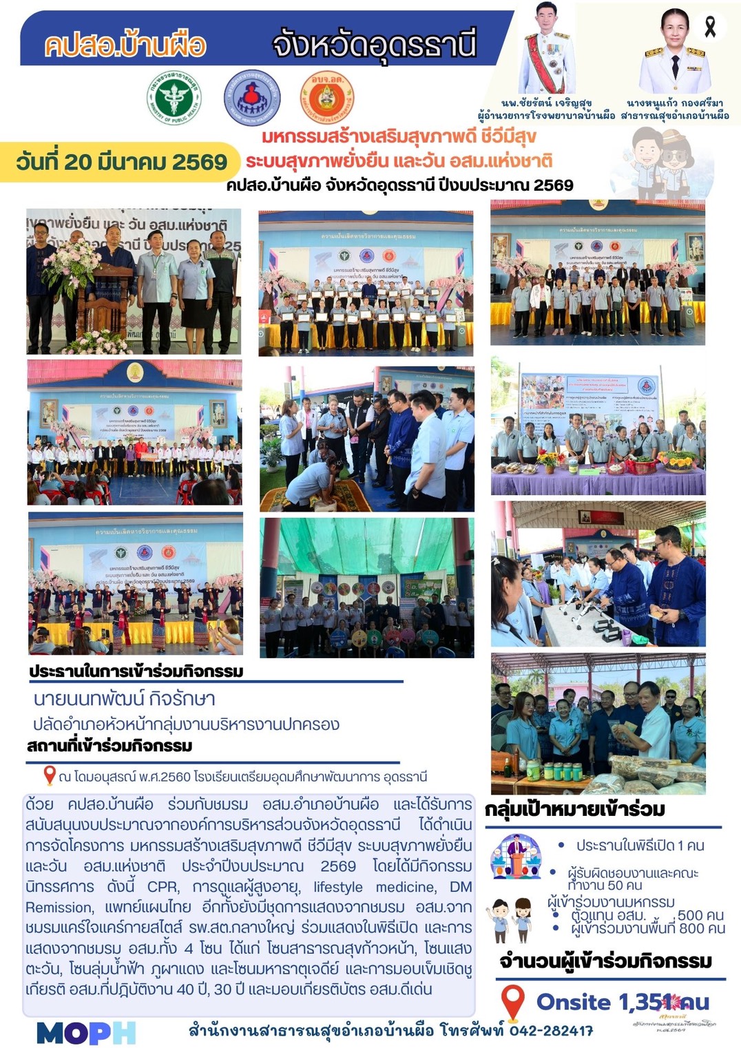 วันที่ 20 มีนาคม 2569 คปสอ.บ้านผือ จัดกิจกรรมวัน อสม.แห่งชาติ ณ.โดมเอนกประสงค์ โรงเรียนเตรียมอุดมศึกษาพัฒนาการอุดรธานี อำเภอบ้านผือ มี อสม.ร่วมงาน จำนวน 1,200 คน