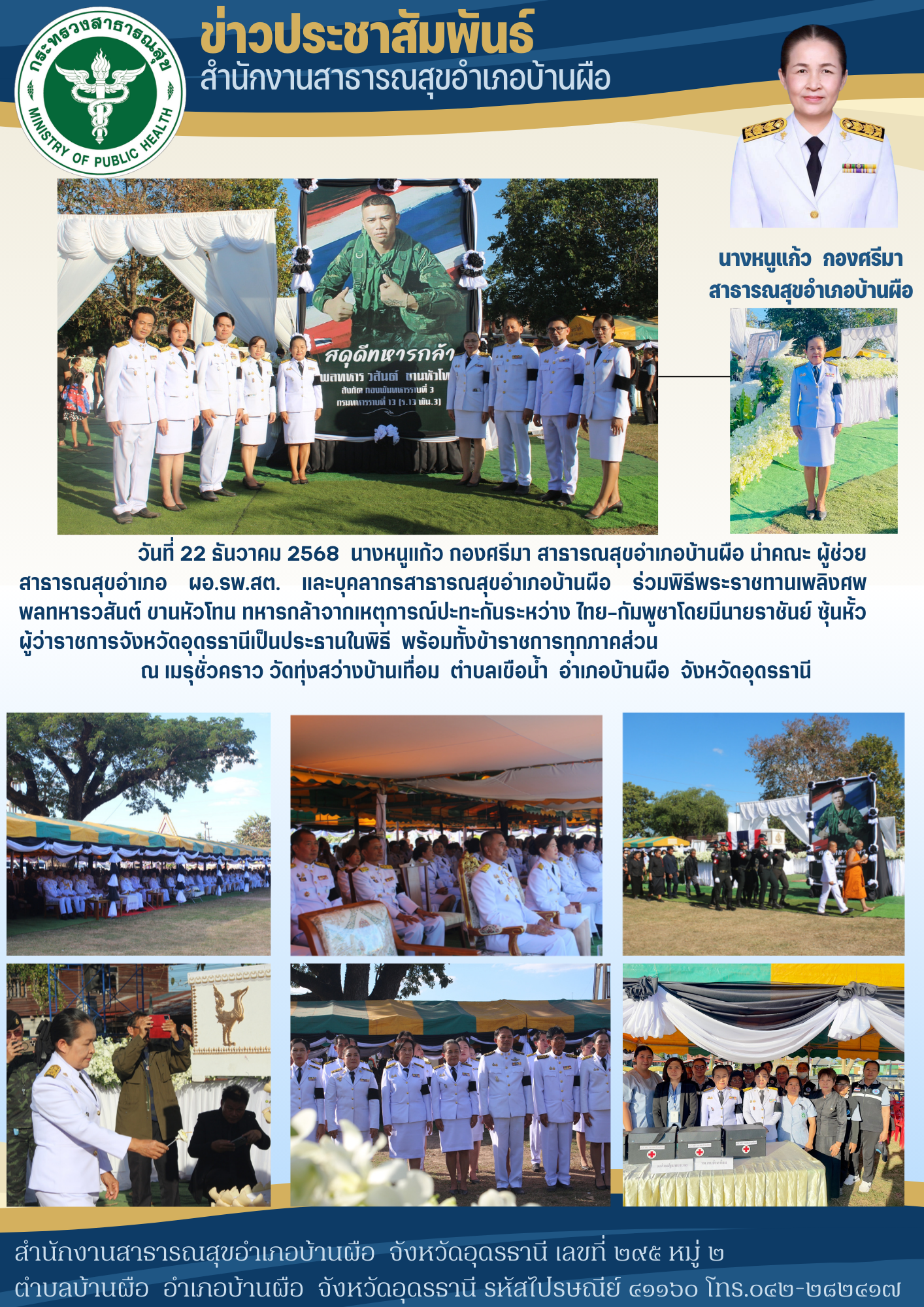 สสอ.บ้านผือ ร่วมพิธีพระราชทานเพลิงศพ พลหทารวสันต์ ขานหัวโทน ทหารกล้าจากเหตุการณ์ปะทะ ไทย-กัมพูชา Attachments: FileFile size 22.12.68.png4414 kB