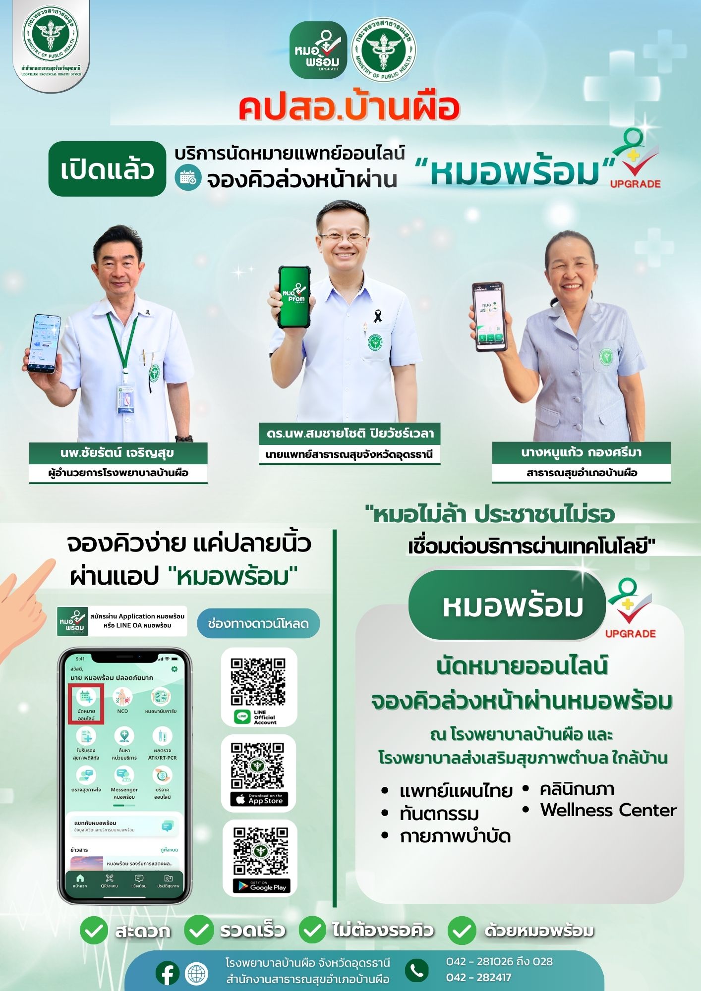 วันที่ 21 กุมภาพันธ์ 2567 คปสอ.บ้านผือ ได้รับการนิเทศงานประจำปี 2567 นำโดย ดร.นพ.สมชายโชติ ปิยวัชร์เวลา นายแพทย์สาธารณสุขจังหวัดอุดรธานี และทันต์แพทย์สันติ ศรีนิล รองนายแพทย์สาธารณสุขจังหวัดอุดรธานี ประธานทีมนิเทศงาน โซน4 พร้อมด้วยคณะฯ ได้เข้าตรวจเยี่ยม รพ.สต.กลางใหญ่ ณ.จุด Health station บ้านกลางใหญ่ ม.12